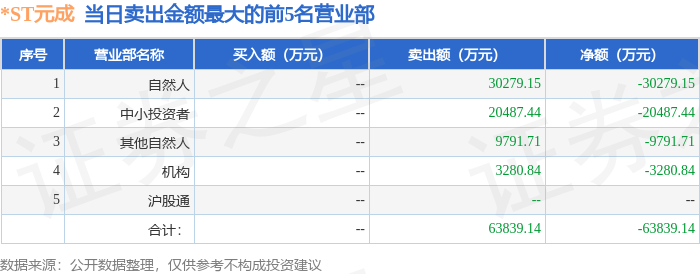 证券之星消息,沪深交易所2025年11月6日公布的交易公开信息显示,*ST元成(603388)因有价格涨跌幅限制的连续30个交易日内收盘价格跌幅偏离值累计达到-70%的证券登上龙虎榜。此次是近5个交易日内第3次上榜。