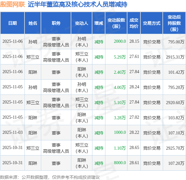 殷图网联近半年内的董监高及核心技术人员增减持详情如下: