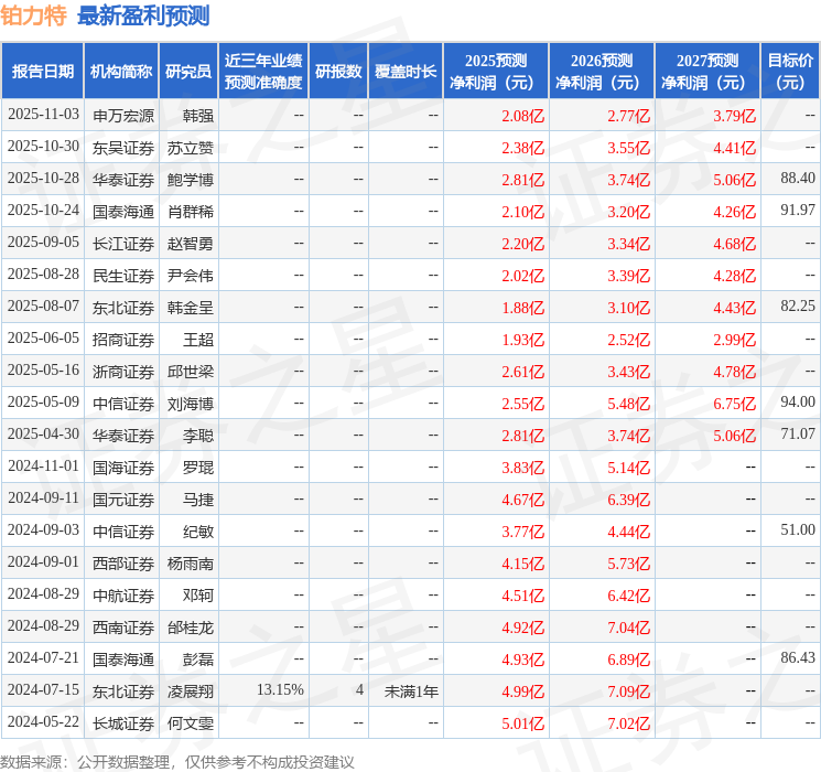 证券之星数据中心根据近三年发布的研报数据计算,东北证券凌展翔研究员团队对该股研究较为深入,近三年预测准确度均值为13.15%,其预测2025年度归属净利润为盈利4.99亿,根据现价换算的预测PE为39.27。