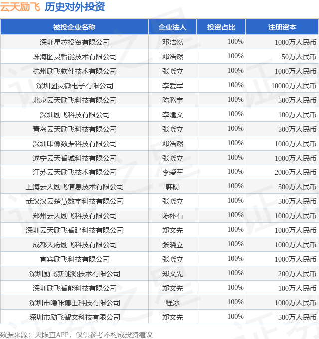 证券之星消息,根据天眼查APP显示,云天励飞(688343.SH)新增一起对外投资事件,被投资公司为深圳星芯投资有限公司,法定代表人邓浩然,投资占比为100%。该公司从事资本市场服务,注册资本为1000万人民币。目前,云天励飞共存在对外投资27项,投资占比前20的项目见下表: