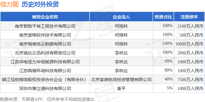 证券之星消息,根据天眼查APP显示,佳力图(603912.SH)新增一起对外投资事件,被投资公司为深圳市豫立通科技有限公司,法定代表人秦平,投资占比为5%。该公司从事软件和信息技术服务业,注册资本为1000万人民币。目前,佳力图共存在对外投资8项,详见下表: