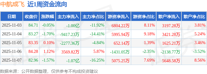资金流向数据方面,本周中航成飞主力资金合计净流出2.89亿元,游资资金合计净流入1.71亿元,散户资金合计净流入1.18亿元。本周资金流向一览见下表: