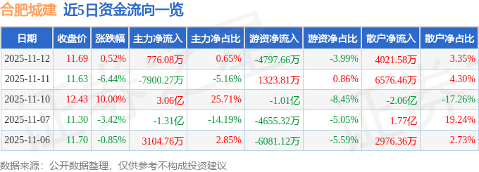 11月12日的资金流向数据方面,主力资金净流入776.08万元,占总成交额0.65%,游资资金净流出4797.66万元,占总成交额3.99%,散户资金净流入4021.58万元,占总成交额3.35%。