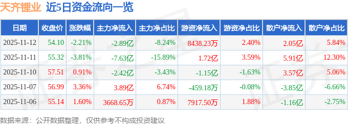11月12日的资金流向数据方面,主力资金净流出2.89亿元,占总成交额8.24%,游资资金净流入8438.23万元,占总成交额2.4%,散户资金净流入2.05亿元,占总成交额5.84%。
