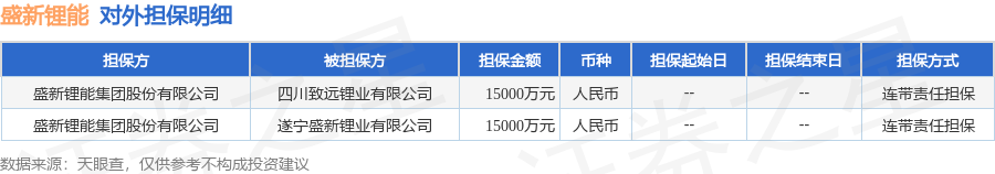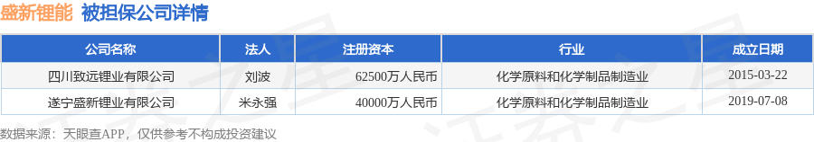 盛新锂能11月12日披露2笔对外担保,被担保公司2家。对外担保明细如下表: