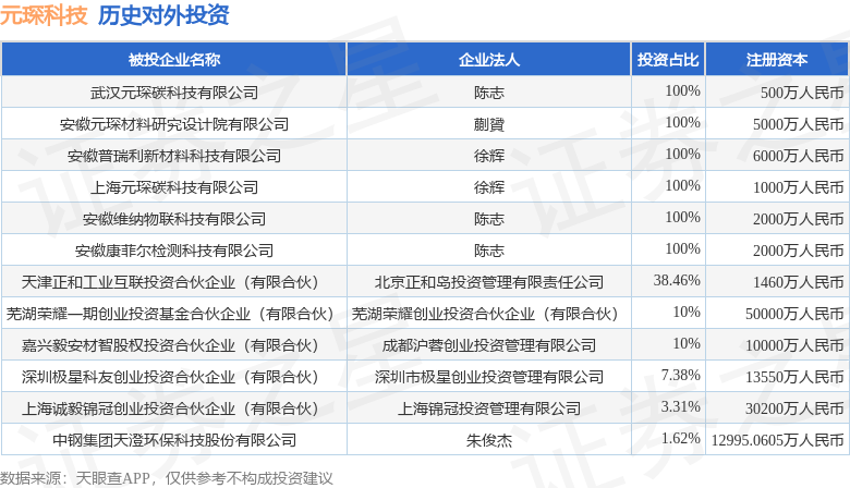 证券之星消息,根据天眼查APP显示,元琛科技(688659.SH)新增一起对外投资事件,被投资公司为中钢集团天澄环保科技股份有限公司,法定代表人朱俊杰,投资占比为1.62%。该公司从事研究和试验发展,注册资本为12995.0605万人民币。目前,元琛科技共存在对外投资12项,详见下表: