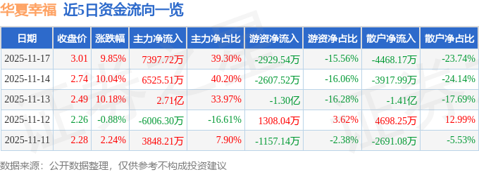 11月17日的资金流向数据方面,主力资金净流入7397.72万元,占总成交额39.3%,游资资金净流出2929.54万元,占总成交额15.56%,散户资金净流出4468.17万元,占总成交额23.74%。