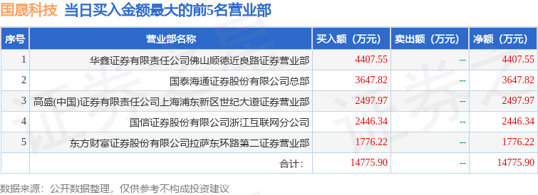 证券之星消息,沪深交易所2025年11月17日公布的交易公开信息显示,国晟科技(603778)因有价格涨跌幅限制的日换手率达到20%的前五只证券登上龙虎榜。此次是近5个交易日内第4次上榜。