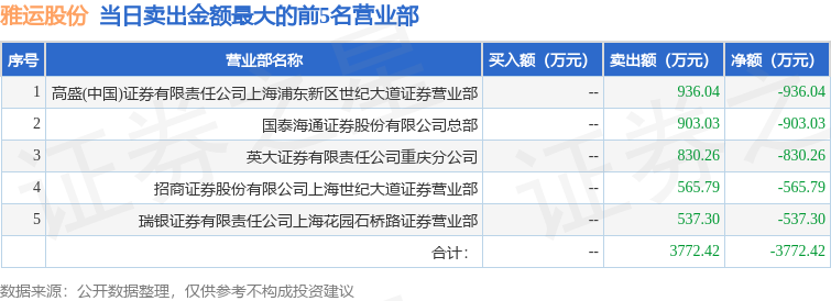 证券之星消息,沪深交易所2025年11月17日公布的交易公开信息显示,雅运股份(603790)因有价格涨跌幅限制的日收盘价格跌幅偏离值达到7%的前五只证券登上龙虎榜。此次是近5个交易日内第1次上榜。
