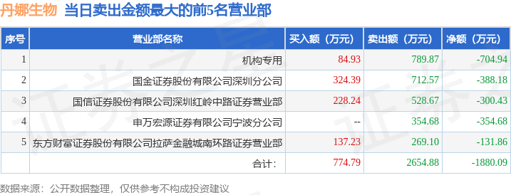 从龙虎榜公布的当日买卖数据来看,机构合计净卖出704.94万元。