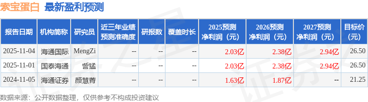 索宝蛋白2025年三季报显示,前三季度公司主营收入12.4亿元,同比上升7.37%;归母净利润1.47亿元,同比上升60.0%;扣非净利润1.42亿元,同比上升74.37%;其中2025年第三季度,公司单季度主营收入4.66亿元,同比上升21.75%;单季度归母净利润4925.55万元,同比上升135.87%;单季度扣非净利润4862.25万元,同比上升172.86%;负债率9.67%,投资收益158.2万元,财务费用-404.51万元,毛利率17.91%。
