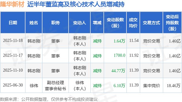 隆华新材近半年内的董监高及核心技术人员增减持详情如下: