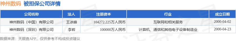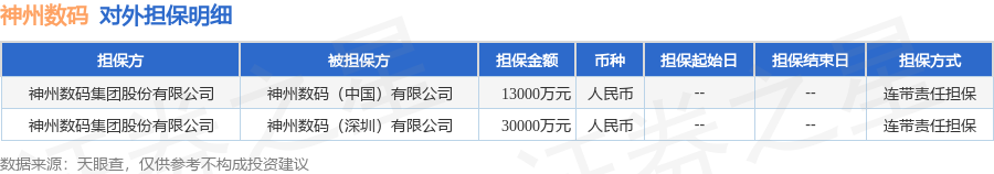 神州数码11月19日披露2笔对外担保,被担保公司2家。对外担保明细如下表: