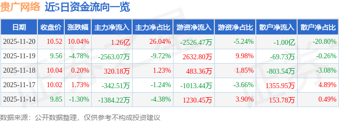 11月20日的资金流向数据方面,主力资金净流入1.26亿元,占总成交额26.04%,游资资金净流出2526.47万元,占总成交额5.24%,散户资金净流出1.0亿元,占总成交额20.8%。