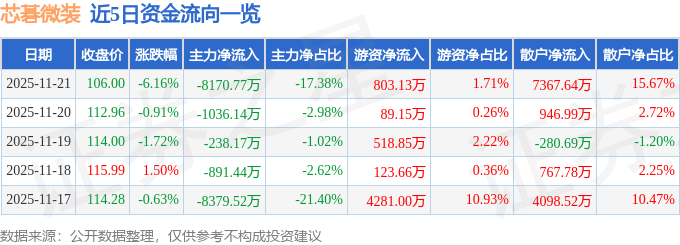 证券之星消息,截至2025年11月21日收盘,芯碁微装(688630)报收于106.0元,下跌6.16%,换手率3.3%,成交量4.34万手,成交额4.7亿元。