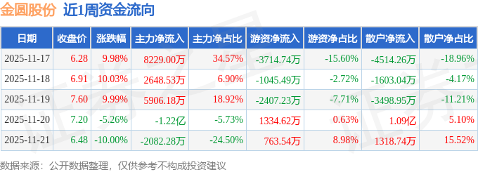 资金流向数据方面,本周金圆股份主力资金合计净流入2502.15万元,游资资金合计净流出5069.3万元,散户资金合计净流入2567.15万元。本周资金流向一览见下表: