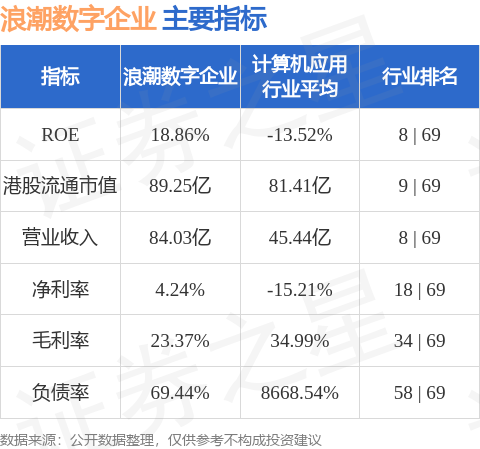 浪潮数字企业港股市值89.25亿港元,在计算机应用行业中排名第9。主要指标见下表: