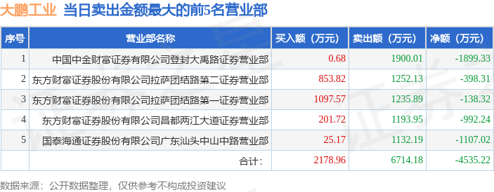 证券之星消息,沪深交易所2025年11月25日公布的交易公开信息显示,大鹏工业(920091)因当日换手率达到20%的前5只股票,当日收盘价跌幅达到-20%的前5只股票,北交所股票最近3个有成交的交易日以内收盘价涨跌幅偏离值累计达到+40%(-40%)登上龙虎榜。此次是近5个交易日内第2次上榜。