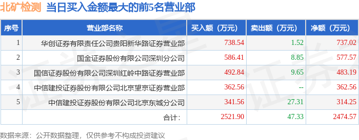 证券之星消息,沪深交易所2025年11月25日公布的交易公开信息显示,北矿检测(920160)因当日换手率达到20%的前5只股票登上龙虎榜。此次是近5个交易日内第5次上榜。