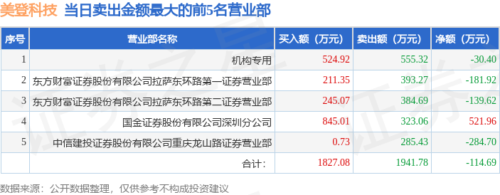 从龙虎榜公布的当日买卖数据来看,机构合计净卖出30.4万元。呼家楼等知名游资榜上有名。(知名游资呼家楼一般指中信建投证券股份有限公司北京东城分公司席位,根据市场资料整理,仅供参考)