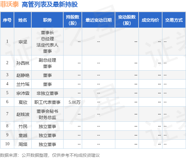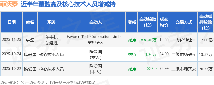 菲沃泰近半年内的董监高及核心技术人员增减持详情如下: