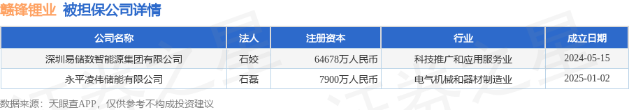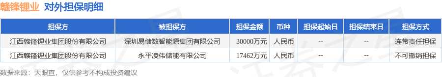 赣锋锂业11月26日披露2笔对外担保,被担保公司2家。对外担保明细如下表: