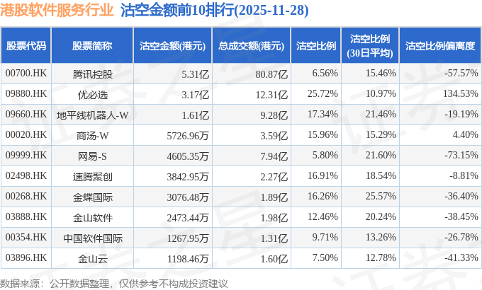 由于港股人民币柜台交易股票成交金额较小,沽空比例普遍偏高,为了避免干扰,已将人民币柜台交易股票从排行表格中剔除。