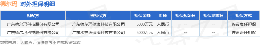 德尔玛11月26日披露2笔对外担保,被担保公司2家。对外担保明细如下表: