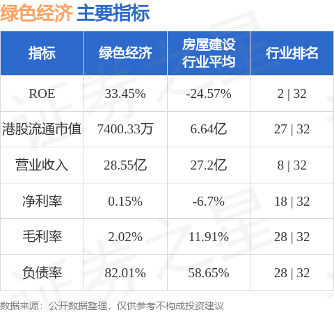 绿色经济港股市值7400.33万港元,在房屋建设行业中排名第27。主要指标见下表: