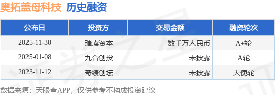 证券之星消息,根据天眼查APP于11月30日公布的信息整理,深圳奥拓盖母科技有限公司A+轮融资,融资额数千万人民币,参与投资的机构包括璀璨资本。