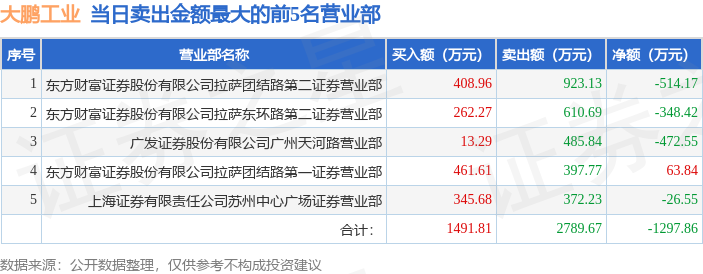 截至2025年12月3日收盘,大鹏工业(920091)报收于51.58元,下跌7.15%,换手率36.5%,成交量4.96万手,成交额2.59亿元。