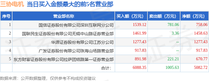 证券之星消息,沪深交易所2025年12月4日公布的交易公开信息显示,三协电机(920100)因当日换手率达到20%的前5只股票登上龙虎榜。此次是近5个交易日内第1次上榜。