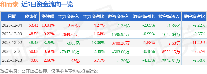 12月4日的资金流向数据方面,主力资金净流入2.6亿元,占总成交额4.27%,游资资金净流出1.25亿元,占总成交额2.05%,散户资金净流出1.35亿元,占总成交额2.22%。