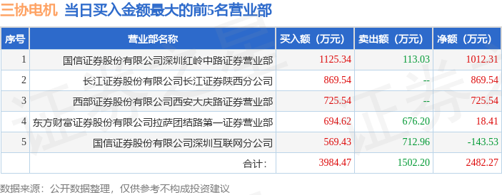 证券之星消息,沪深交易所2025年12月5日公布的交易公开信息显示,三协电机(920100)因当日换手率达到20%的前5只股票登上龙虎榜。此次是近5个交易日内第2次上榜。