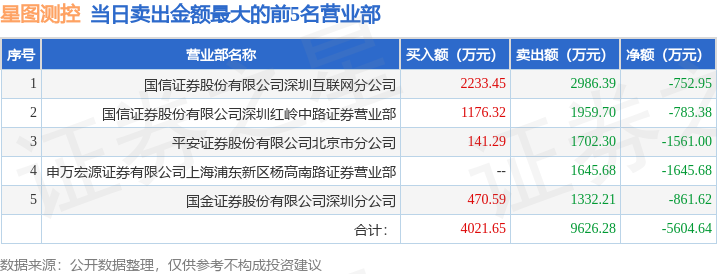 证券之星消息,沪深交易所2025年12月5日公布的交易公开信息显示,星图测控(920116)因当日换手率达到20%的前5只股票登上龙虎榜。此次是近5个交易日内第5次上榜。