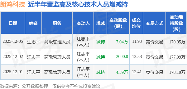 朗鸿科技近半年内的董监高及核心技术人员增减持详情如下: