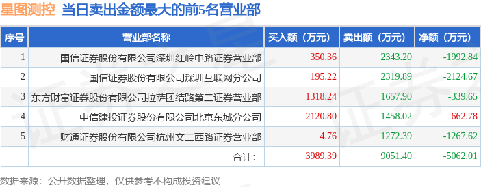 证券之星消息,沪深交易所2025年12月8日公布的交易公开信息显示,星图测控(920116)因当日换手率达到20%的前5只股票登上龙虎榜。此次是近5个交易日内第5次上榜。