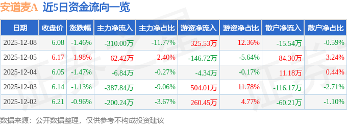 证券之星消息,截至2025年12月8日收盘,安道麦A(000553)报收于6.08元,下跌1.46%,换手率0.2%,成交量4.31万手,成交额2633.14万元。