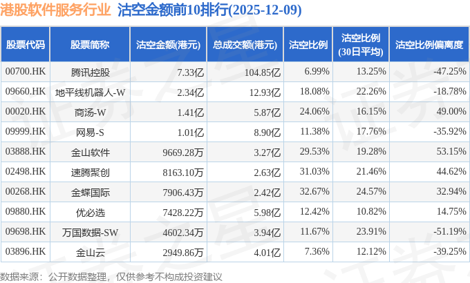 由于港股人民币柜台交易股票成交金额较小,沽空比例普遍偏高,为了避免干扰,已将人民币柜台交易股票从排行表格中剔除。