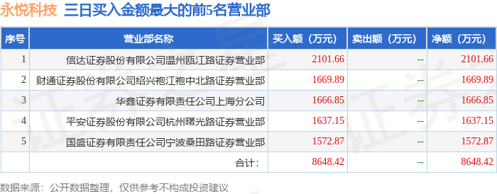 从龙虎榜公布的当日买卖数据来看,宁波桑田路等知名游资榜上有名。(知名游资宁波桑田路一般指国盛证券有限责任公司宁波桑田路证券营业部席位,根据市场资料整理,仅供参考)
