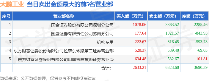 证券之星消息,沪深交易所2025年12月11日公布的交易公开信息显示,大鹏工业(920091)因当日换手率达到20%的前5只股票,当日收盘价涨幅达到20%的前5只股票登上龙虎榜。此次是近5个交易日内第5次上榜。