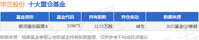 根据2025基金Q3季报公募基金重仓股数据,重仓该股的公募基金共1家,其中持有数量最多的公募基金为银河基金的银河康乐股票A。银河康乐股票A目前规模为1.56亿元,最新净值2.447(12月11日),较上一交易日下跌1.29%,近一年上涨9.0%。该公募基金现任基金经理为方伟。方伟在任的基金产品包括:银河医药混合A,管理时间为2022年3月22日至今,期间收益率为-17.98%。