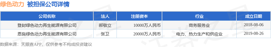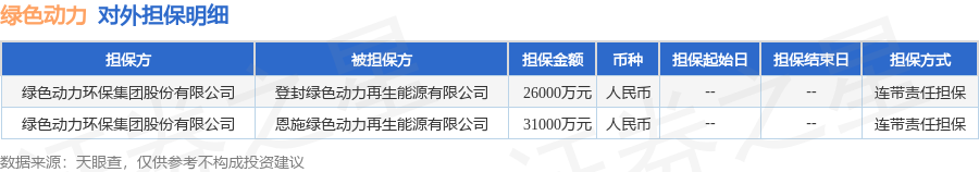 绿色动力12月11日披露2笔对外担保,被担保公司2家。对外担保明细如下表: