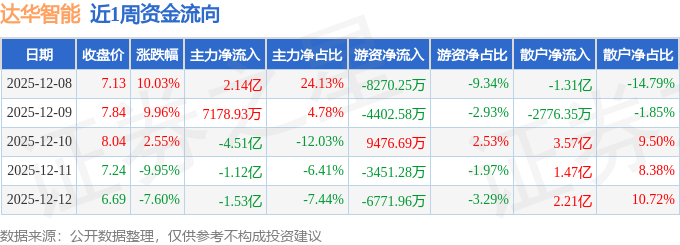 资金流向数据方面,本周达华智能主力资金合计净流出4.32亿元,游资资金合计净流出1.34亿元,散户资金合计净流入5.66亿元。本周资金流向一览见下表: