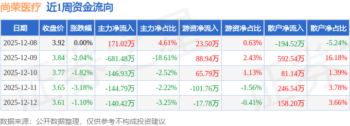 资金流向数据方面,本周尚荣医疗主力资金合计净流出942.6万元,游资资金合计净流入58.68万元,散户资金合计净流入883.92万元。本周资金流向一览见下表:
