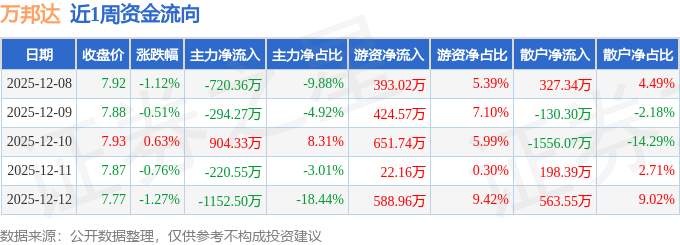 沪深股通持股方面,截止2025年12月12日收盘,万邦达深股通持股数为357.81万股,占流通股比为57.0%。