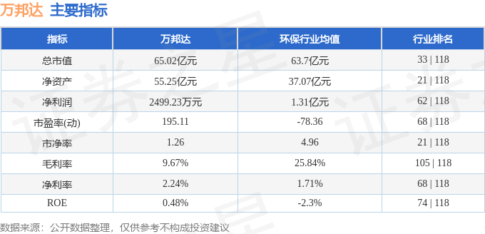 万邦达(300055)主营业务:包括新材料的生产与销售、危固废处理、水务工程及运营、新能源综合利用等,致力于通过工程总承包、投资、运营和技术咨询等方式为用户提供环境系统整体解决方案,已逐步形成南材料、北固废、西水务的产业格局。 万邦达2025年三季报显示,前三季度公司主营收入17.84亿元,同比下降5.56%;归母净利润2499.23万元,同比上升390.47%;扣非净利润1212.3万元,同比上升164.19%;其中2025年第三季度,公司单季度主营收入5.97亿元,同比下降5.4%;单季度归母净利润248.78万元,同比上升114.3%;单季度扣非净利润-349.65万元,同比上升82.82%;负债率36.63%,投资收益1579.37万元,财务费用829.21万元,毛利率9.67%。