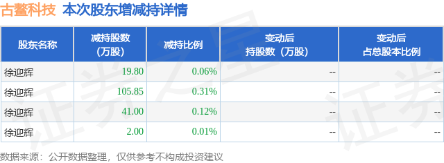 证券之星消息,12月14日古鳌科技发布公告《古鳌科技:简式权益变动报告书》,其股东徐迎辉于2025年8月1日至2025年11月30日间合计减持168.65万股,占公司目前总股本的0.496%,变动期间该股股价上涨21.64%,截止11月28日收盘报13.38元。