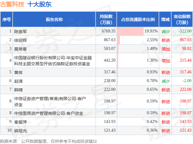 根据古鳌科技2025年三季报公布的十大股东详情如下: