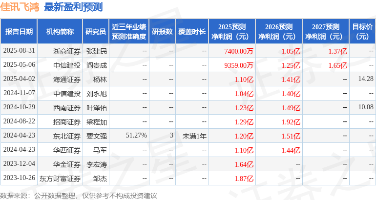 最新盈利预测明细如下: